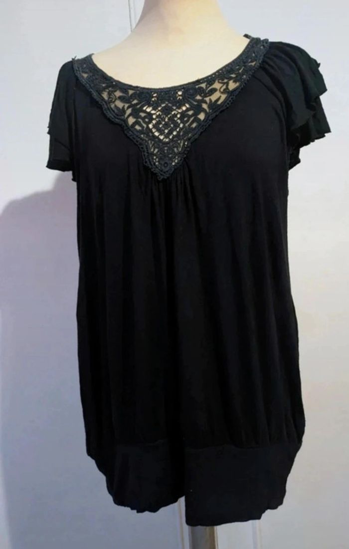 Haut tunique femme tendance noir à dentelle - photo numéro 1