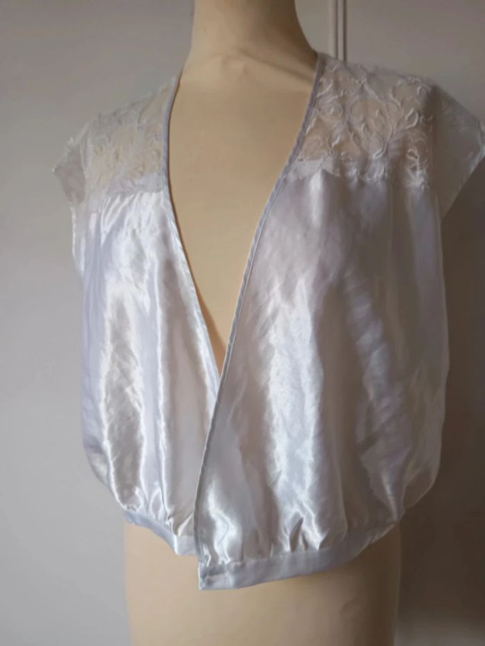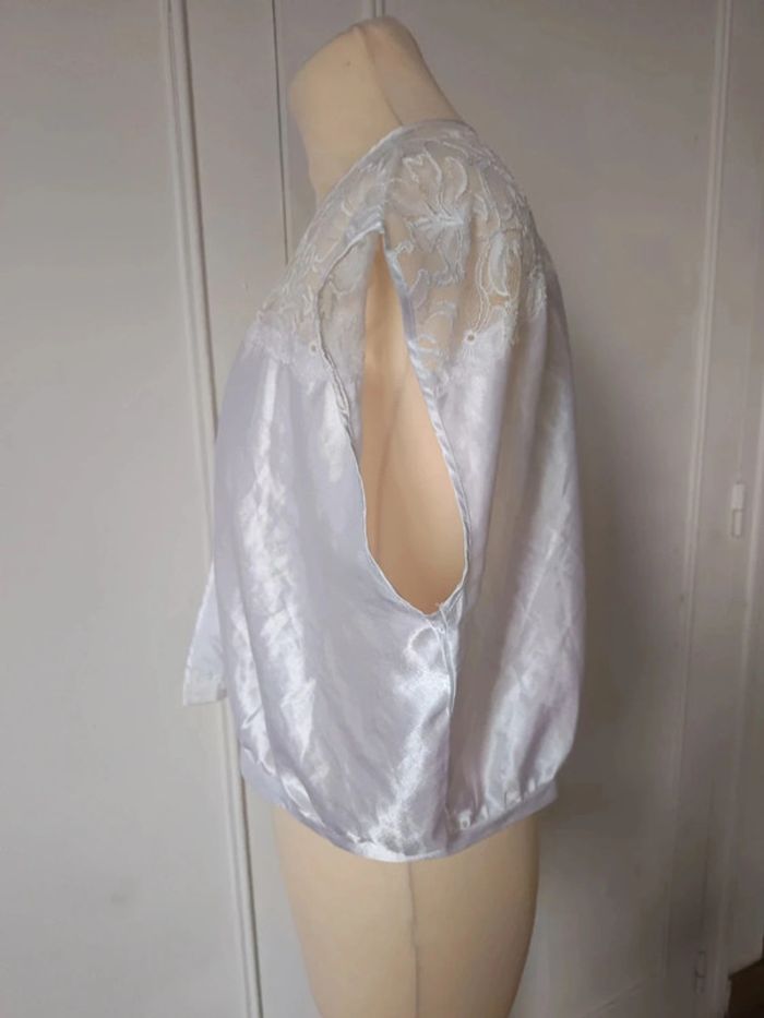 💎haut top sexy satiné brillant élégante été made in France vintage rare dentelle Warner taille  l 40 - photo numéro 7