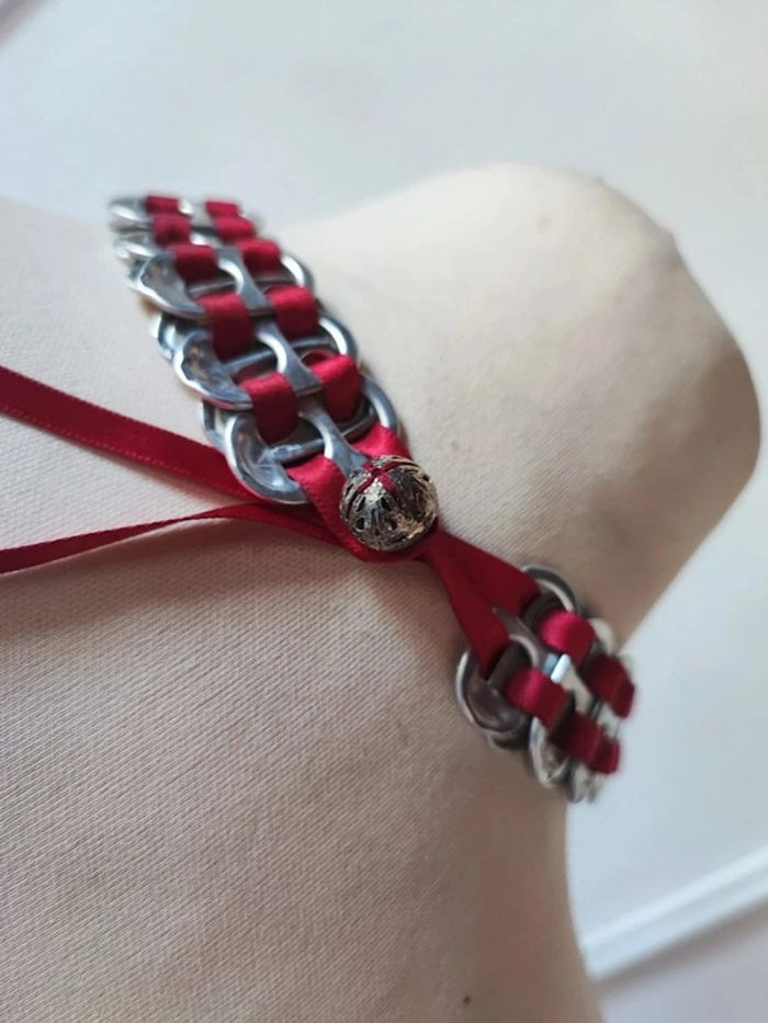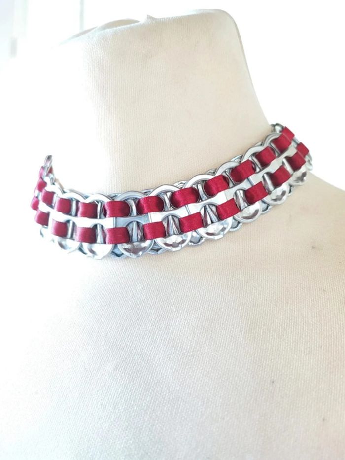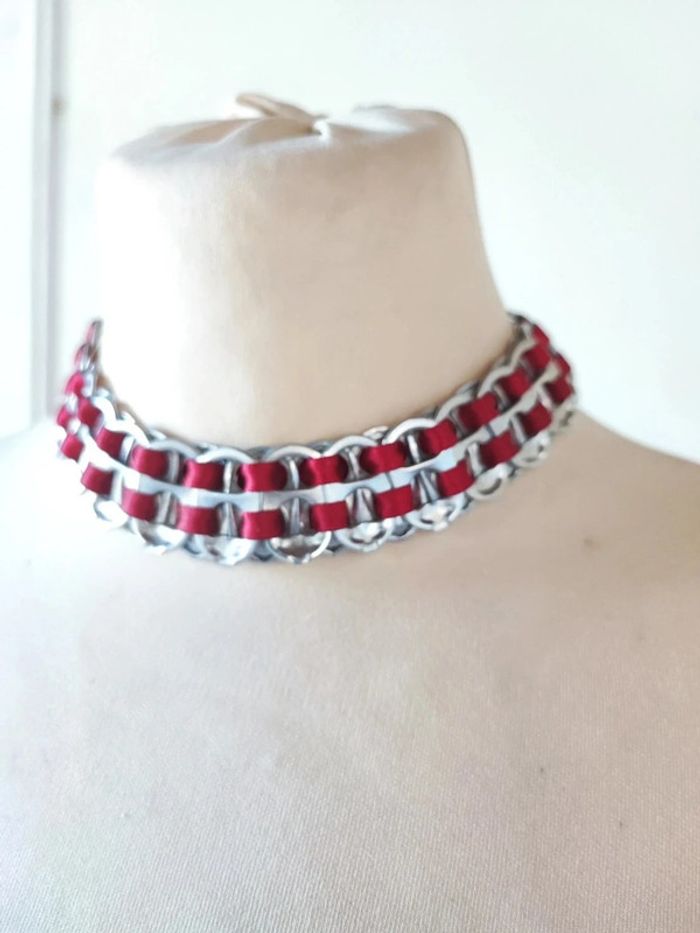 💓 ♻️collier en matière recyclé, languette de soda 💓 Léger agréable à porter 💓 ruban Satin rose fushia 💓Neuf création française original diam'n 💓 Fermeture facile Collier doublé en languette peut se mettre des 2 côté 🌎Pièce unique Languette récoltée, désinfectée, limée, polis. #collier #pieceunique
