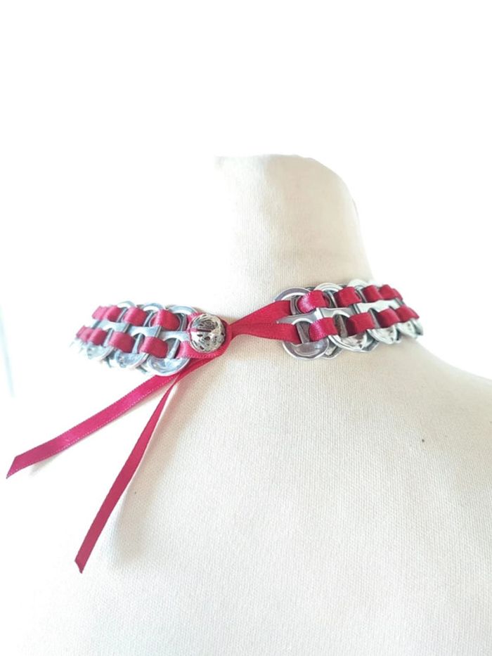 💓 collier recyclé languette de soda créateur satin rose fushia