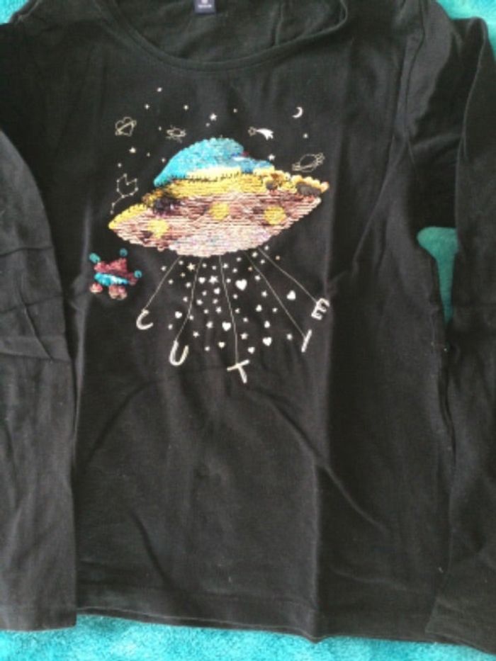 tee shirt decor paillettes kiabi 8 ans tbe