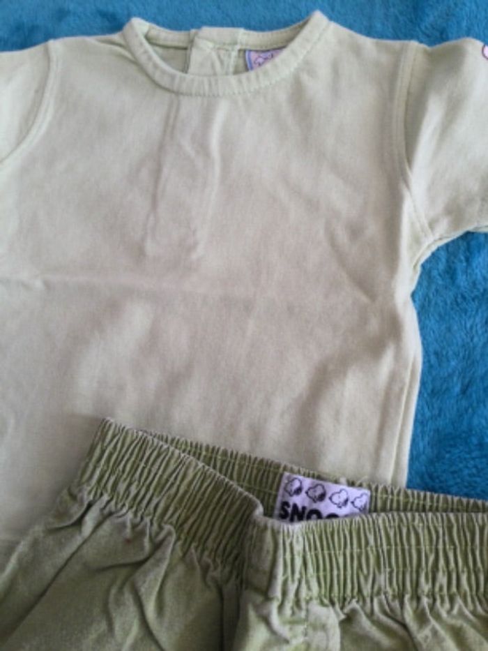 lot pantalon snoppy et teeshirt neuf baby s 6 mois tbe couleur pour les 2 tons vert