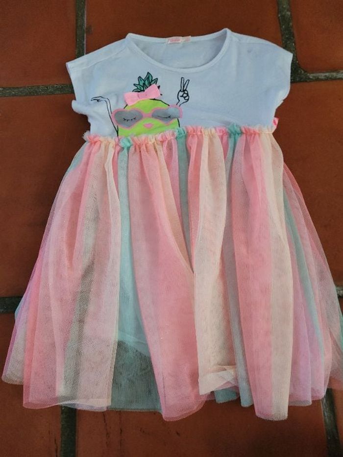 Robe manche courte avec tulle multicolore et jupon en dessous. Facile à mettre et fluide