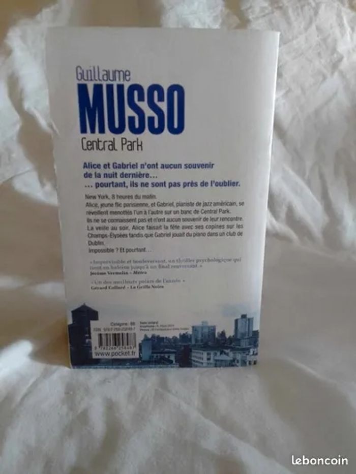 Roman de poche central Park Guillaume Musso Très bon état Prix 1.50€ Les réductions sont activés sur les lots