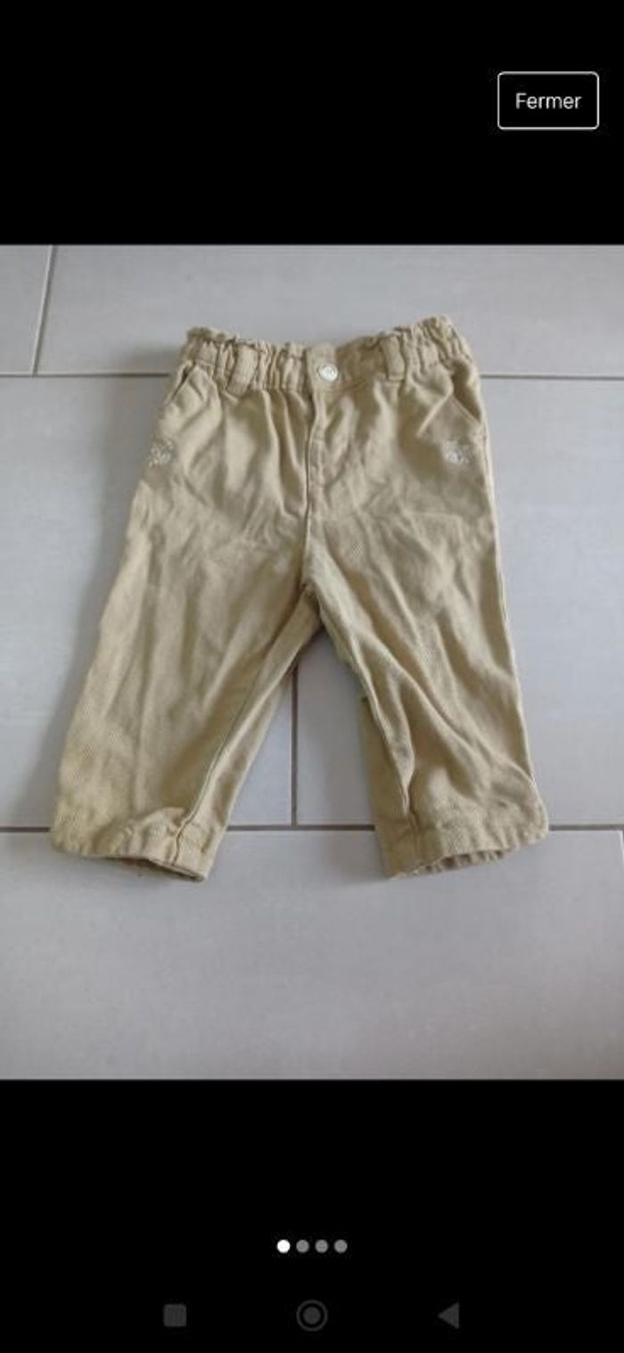 Pantalon épais, broderie fleur blanche au niveau des poches. Taille élastiquée