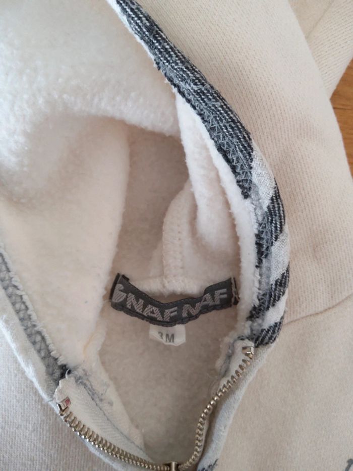Gilet crème et gris à capuche, Naf Naf, 3 mois N'hésitez pas à rechercher par # les vêtements de même categorie #fifi4935fille3mois