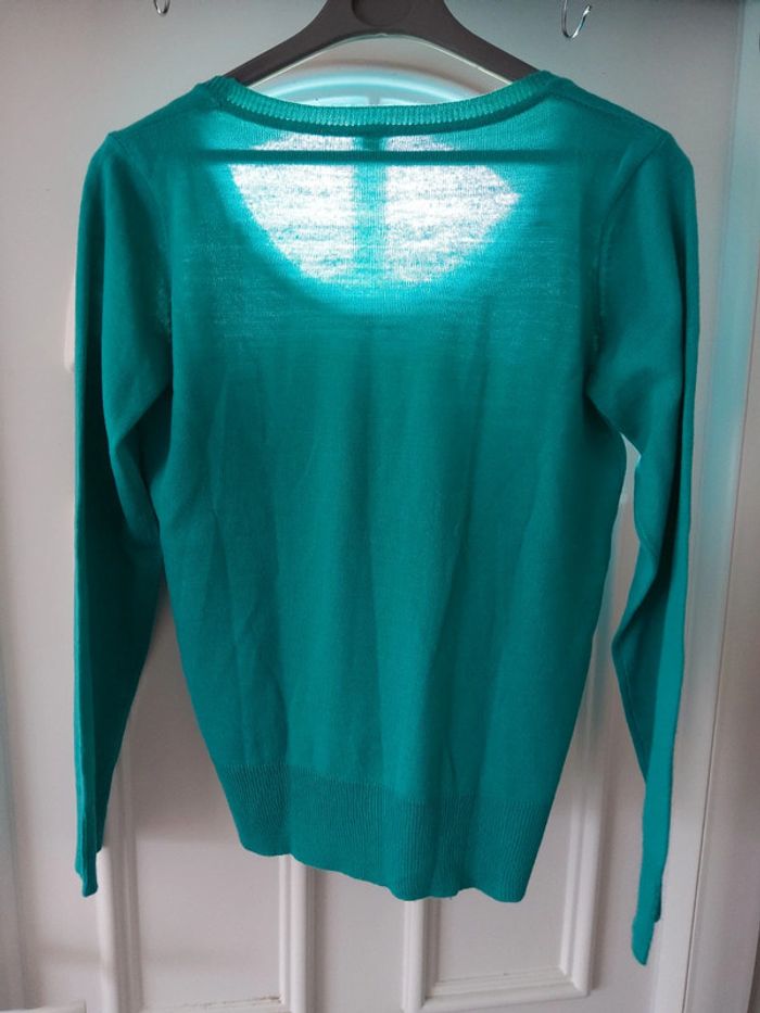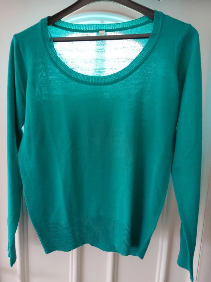 Pull léger vert, col rond, taille 42-44, longueur 60 cm, largeur épaules 39 cm N'hésitez pas à rechercher par # les vêtements, objets de même categorie #fifi4935femme42