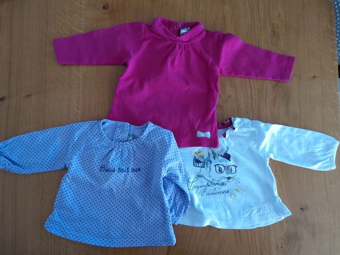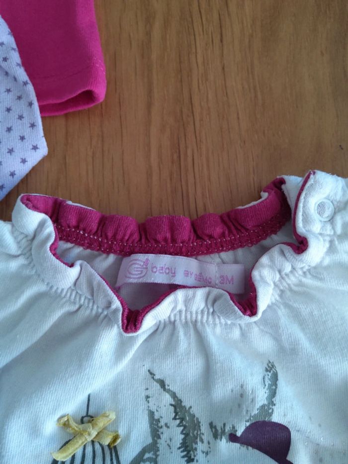 Lot de 3 maillots ML , 2 Tape A L'œil (violet et rose) et 1 Gémo (blanc), 3 mois #fifi4935fille3mois