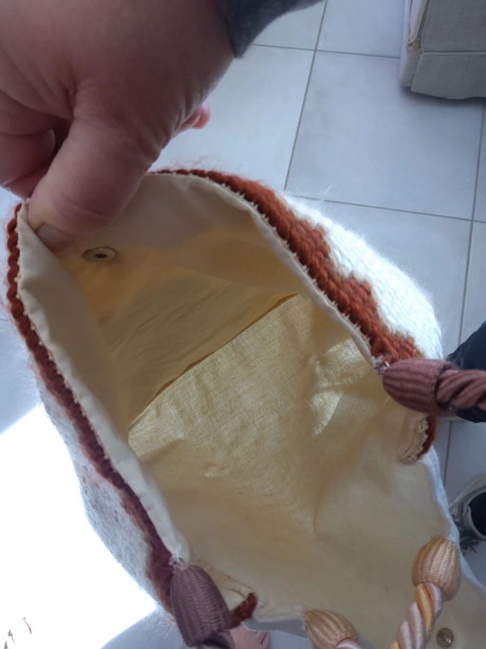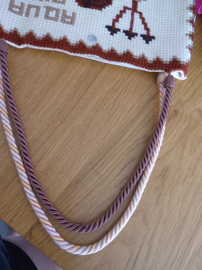 Sac motif en laine, 37cm de large, 38cm de haut, hauteur des anses 30cm, fermeture par pression, création maison #fifi4935sac