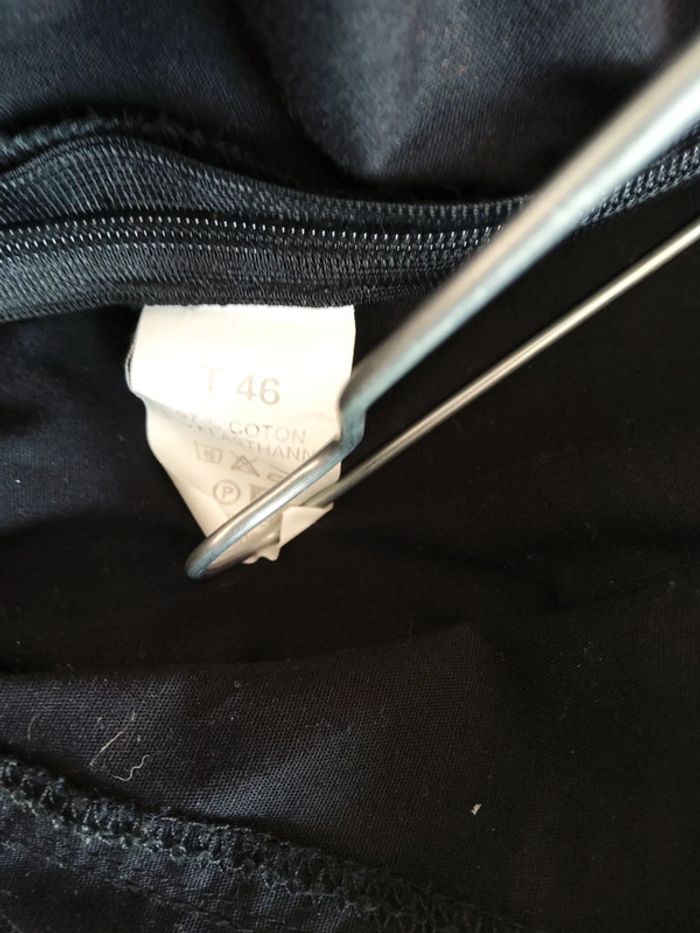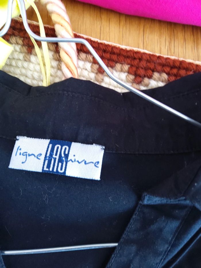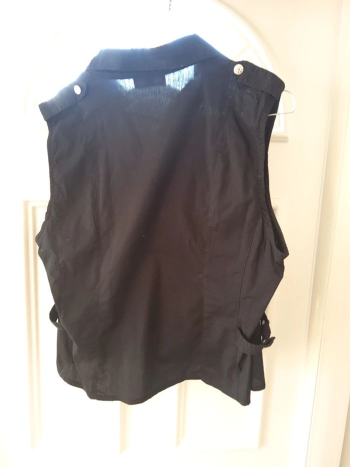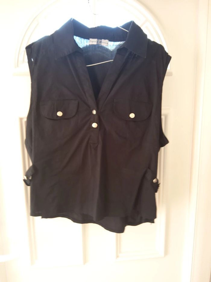 Chemisier noir sans manches, possibilité d'ouvrir sur un côté par fermeture invisible ou resserré avec boutons, ligne à suivre, taille 46 taille petit #fifi4935femme46