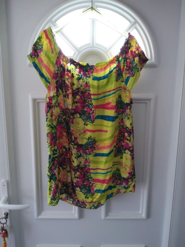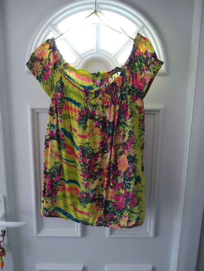 Maillot manches courtes vert, légèrement élastique à la taille, taille 38 #fifi4935femmetaille3