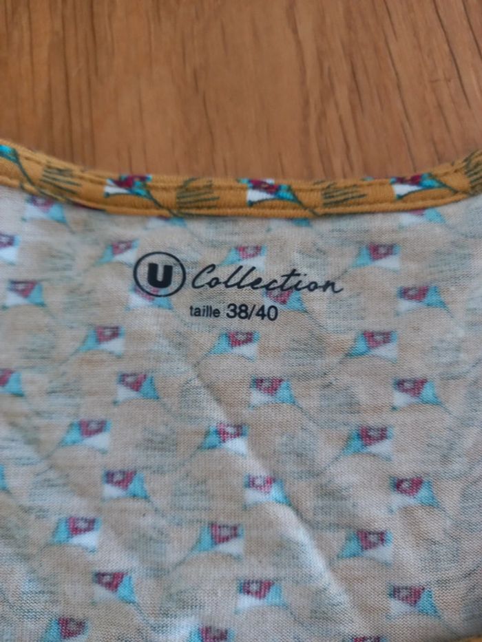 T-shirt moutarde à motifs en viscose, U collection taille 38/40 #fifi4935femme38