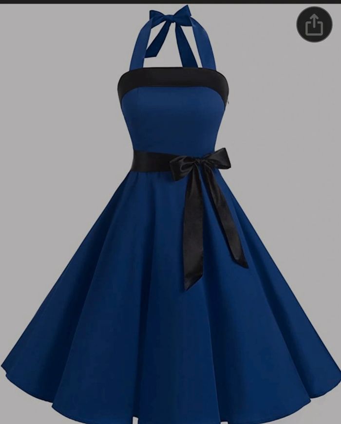 Robe style vintage 2XL, bleu roi, Timormode, portée 2 fois,45cm à la taille, 48cm aisselles à aisselles, fermeture invisible sur le côté, avec jupon taille XL, 42cm. Peut être portée avec ou sans jupon. #fifi4935femmeXL