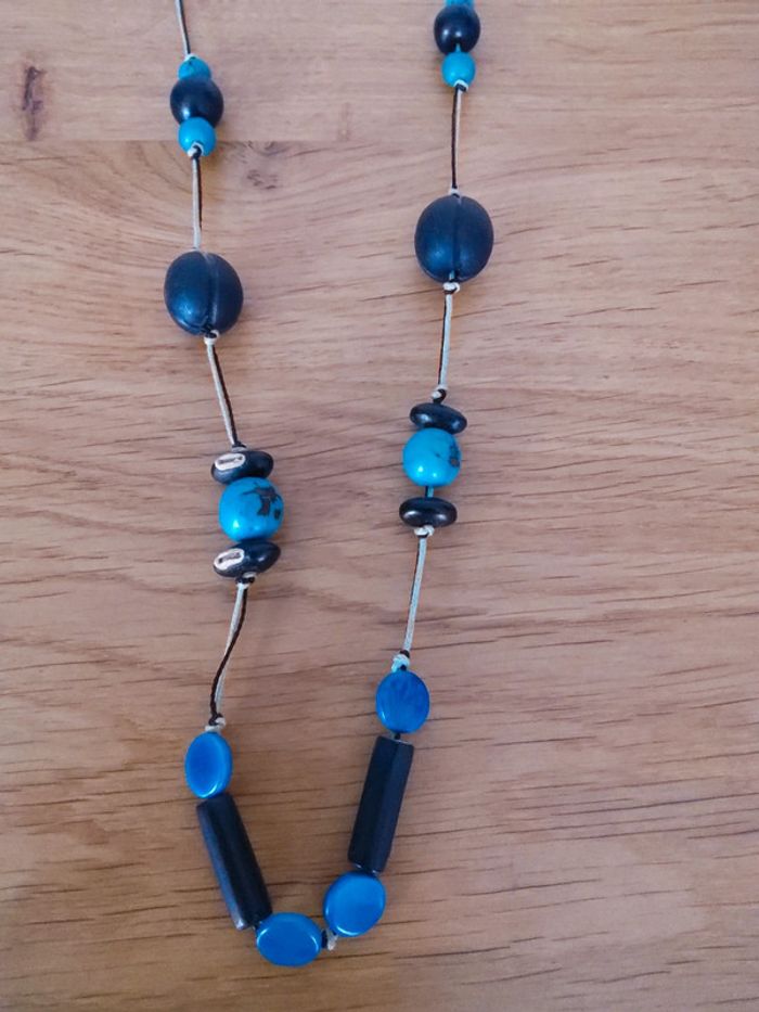 Collier fantaisie, noir et bleu canard, longueur 37cm #fifi4935bijoux
