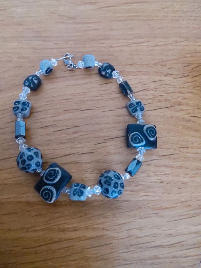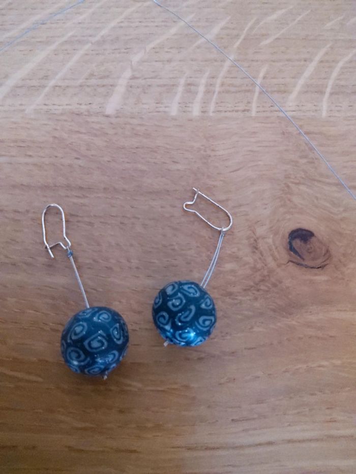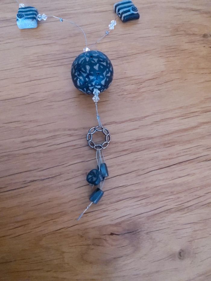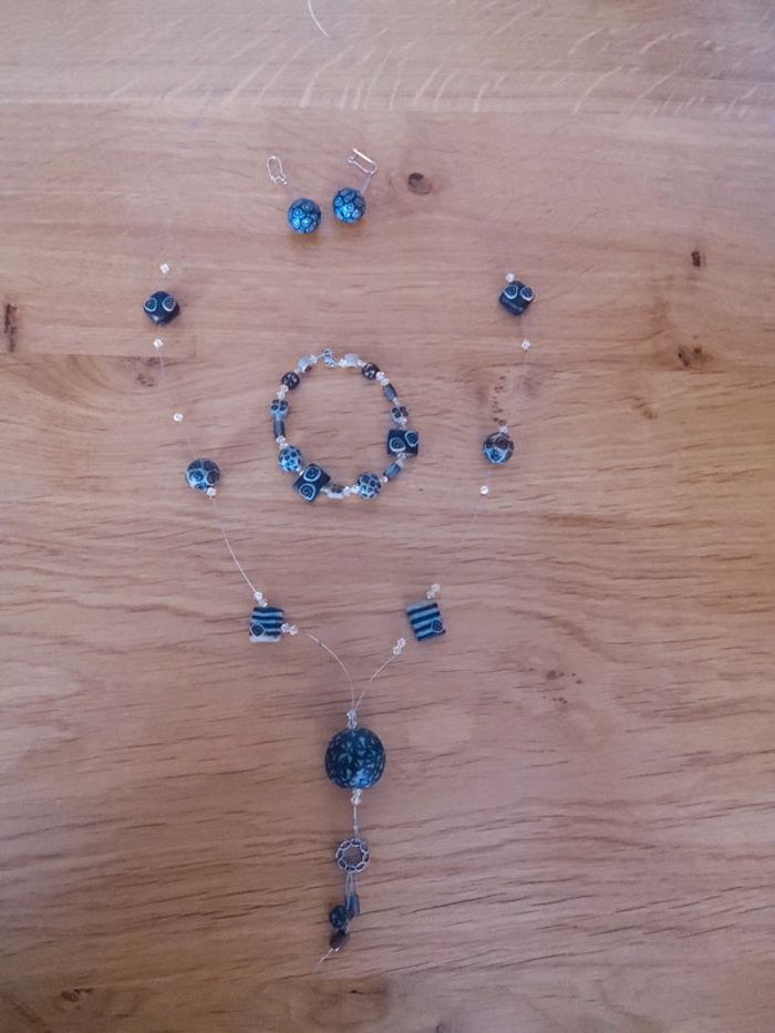 Collier, bracelet et boucles d'oreilles en fibres gris et noir légèrementirisé, longueur collier 50cm, boucles d'oreilles 5cm, diamètre bracelet 8cm #fifi4935bijoux