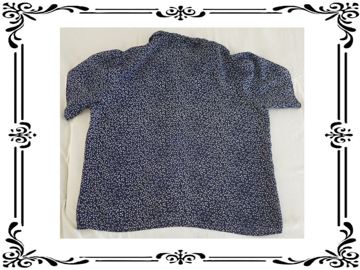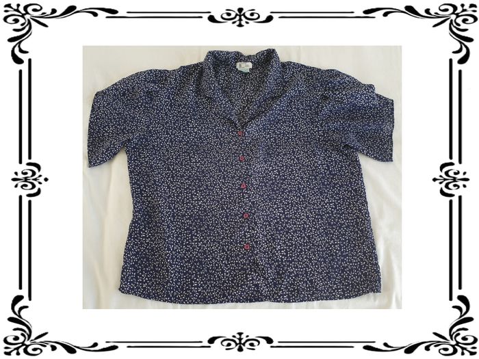 Chemise taille 48. Chemise manches courtes marine avec motifs blancs. Tissu non extensible. 100 % polyester. Largeur d’épaule à épaule : 44 cm Largeur sous les bras : 58 cm Largeur à la taille : 57 cm Hauteur du décolleté à partir de l’encolure : 18 cm Longueur totale : 62,5 cm Longueur des manches : 20 cm En très bon état. C&A. 3€. #vero38110vetementsfemme48