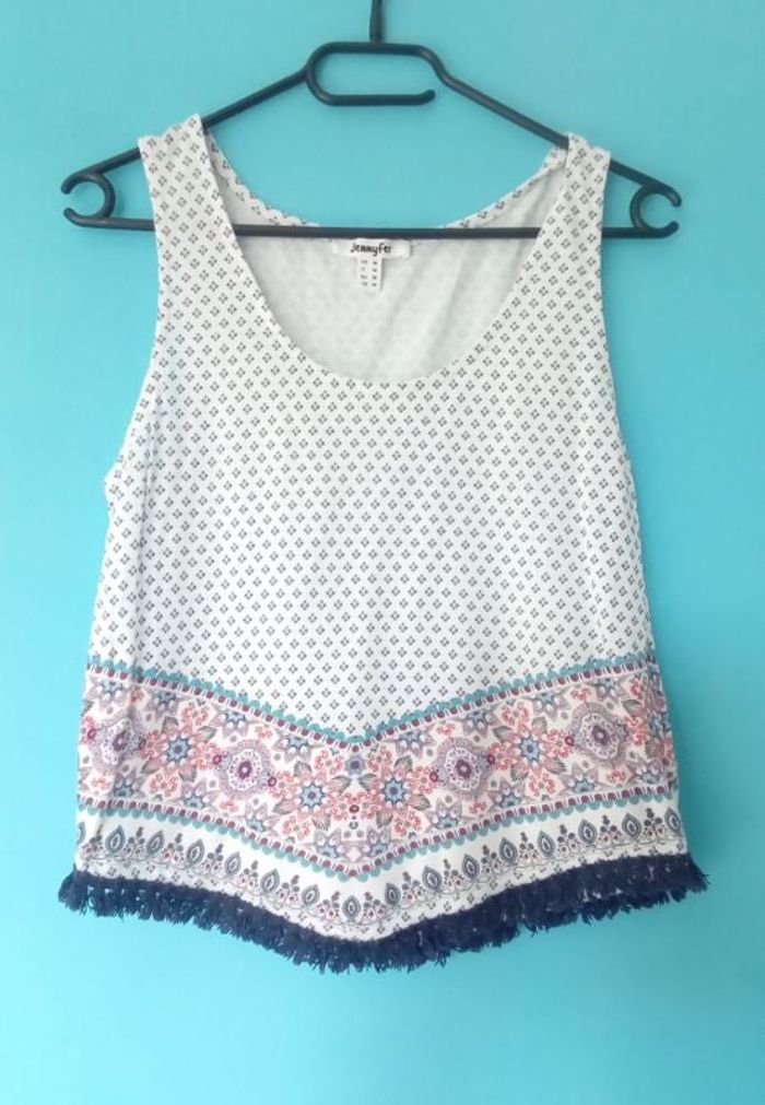 🌺 Débardeur avec motifs et pompons "Jennyfer" 🌺 Taille 38 🌺 Très bon état 🌺 #débardeur #motif #taille38 #jennyfer #aztèque #provençal #vetementT38selena2477