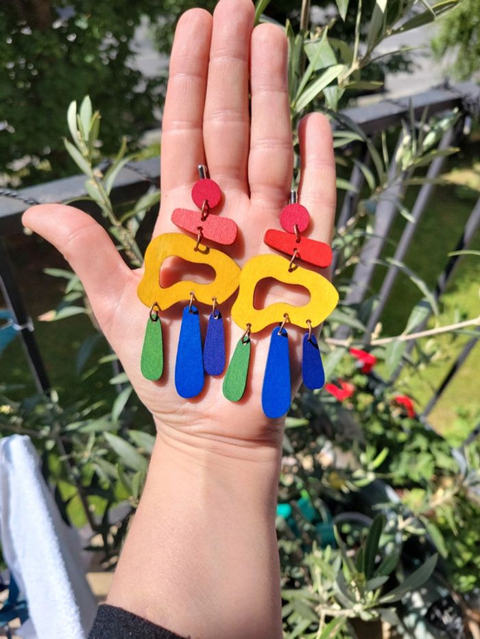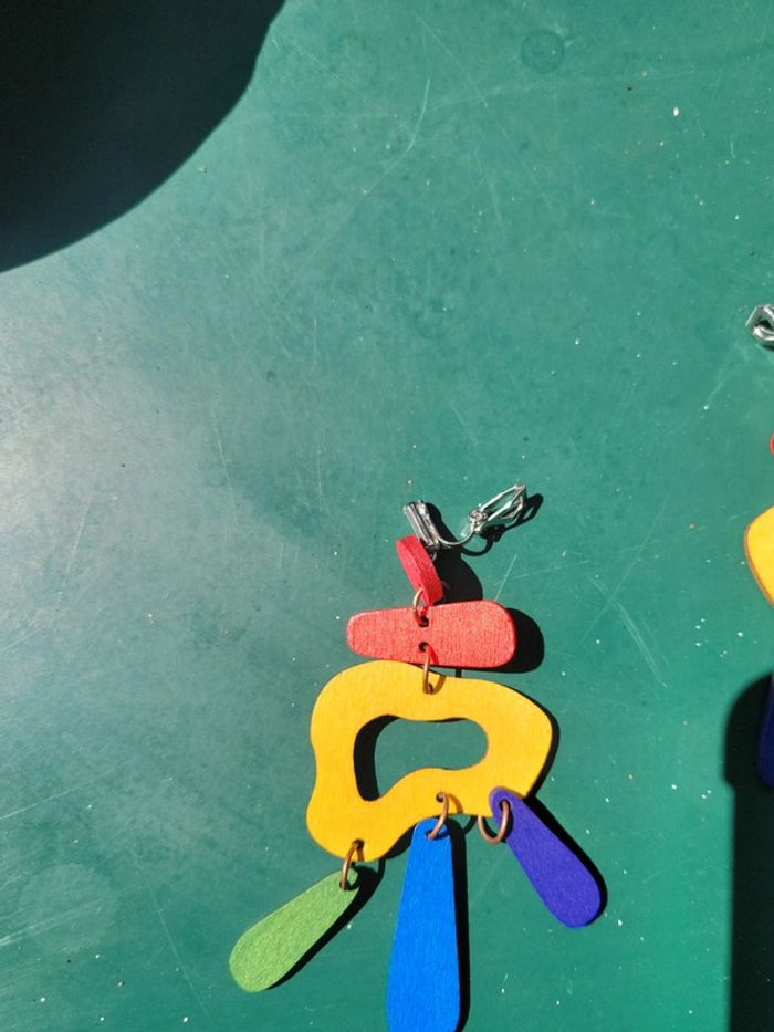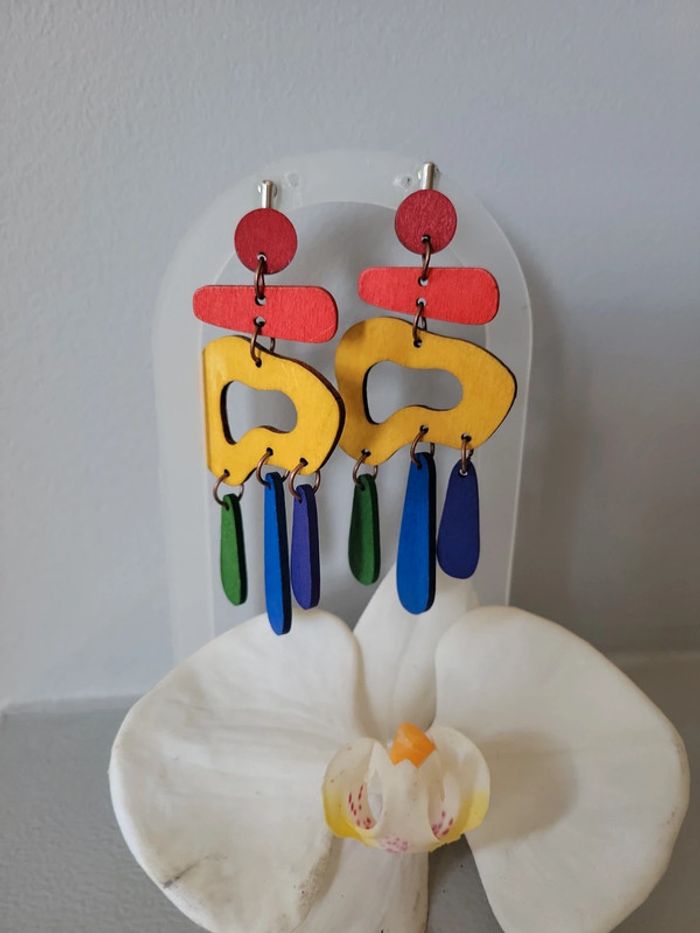 Clips d oreilles 👂 ( percées ou non) Attache en acier inoxydable silver. Et pampilles en bois coloré. 🌸 neufs. Fais main ✋️ Différentes modeles dispo dans mon dressing. Lot possible. Envoi sous 24h48h. Rapide et soigné.