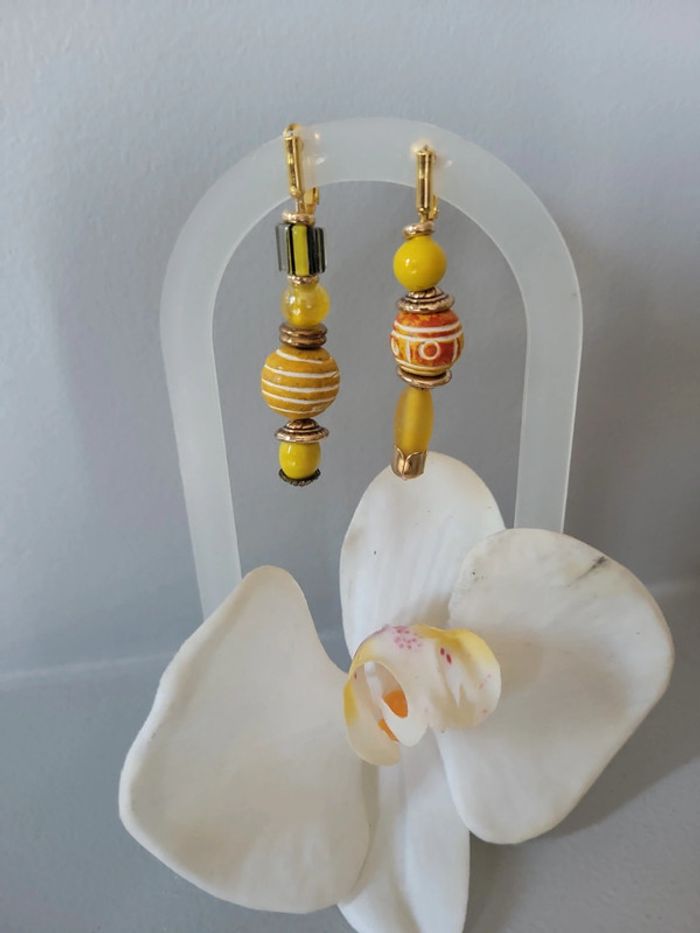 Clips d oreilles asymetriques perles - photo numéro 7