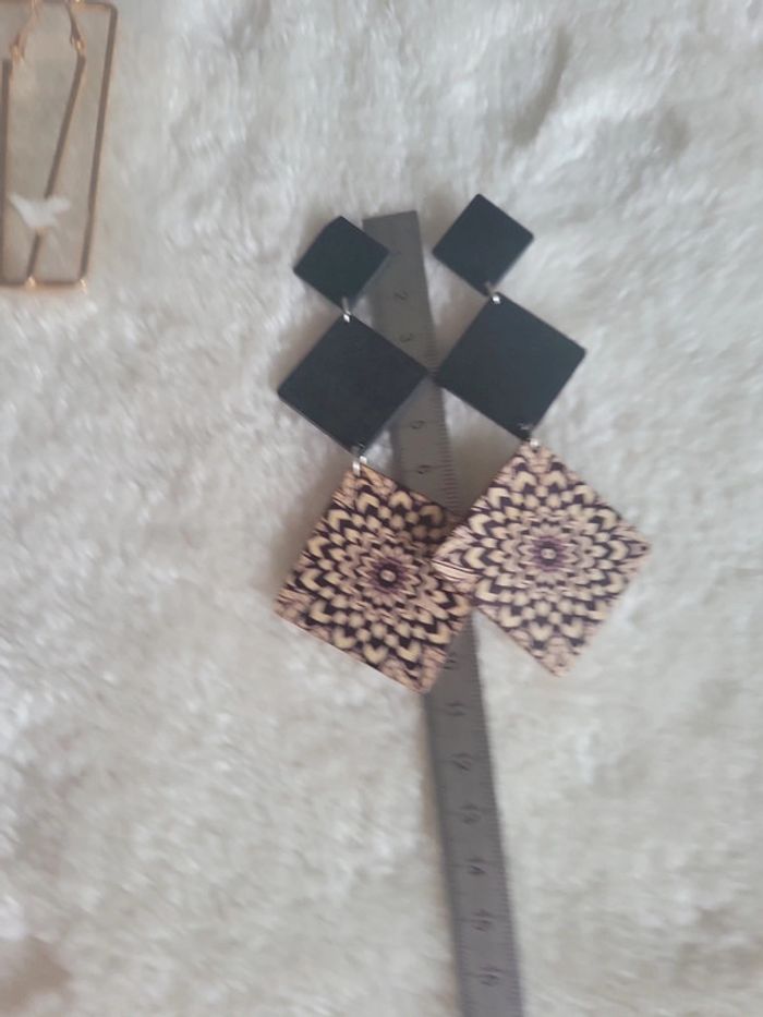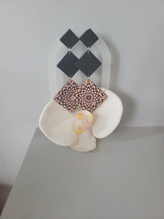 Boucles d oreilles bois et mandala - photo numéro 3