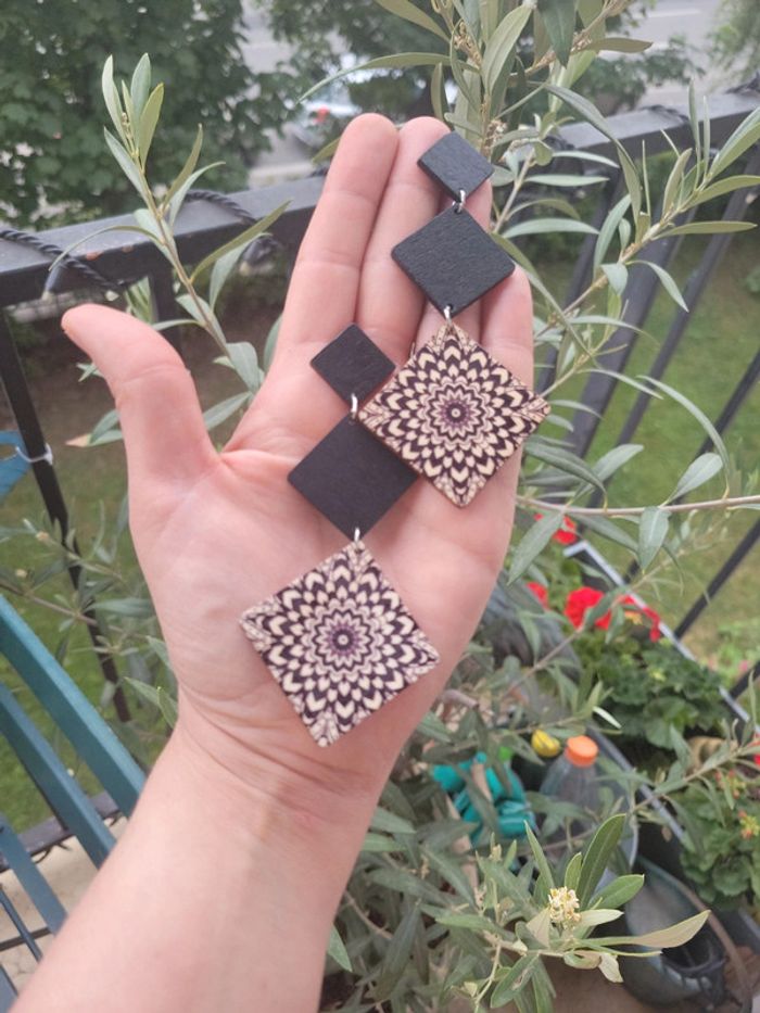 Boucles d oreilles bois et mandala - photo numéro 1