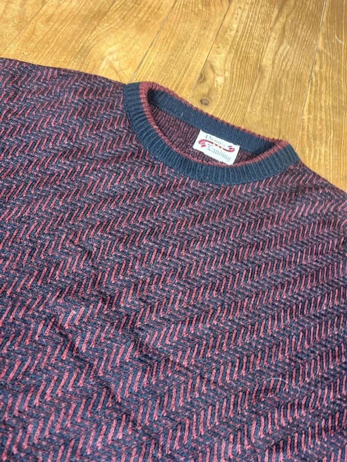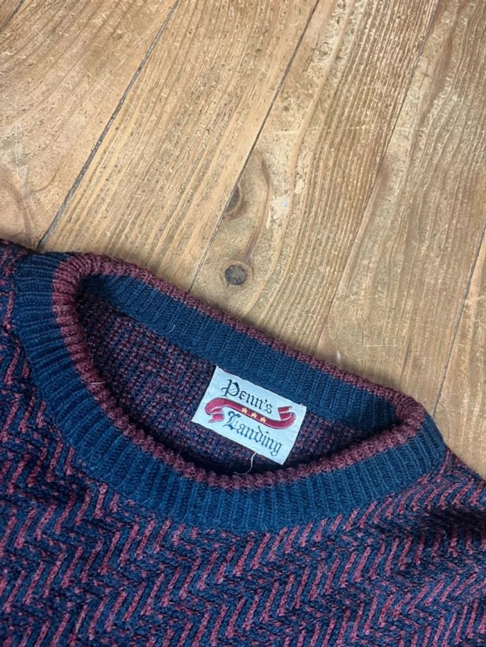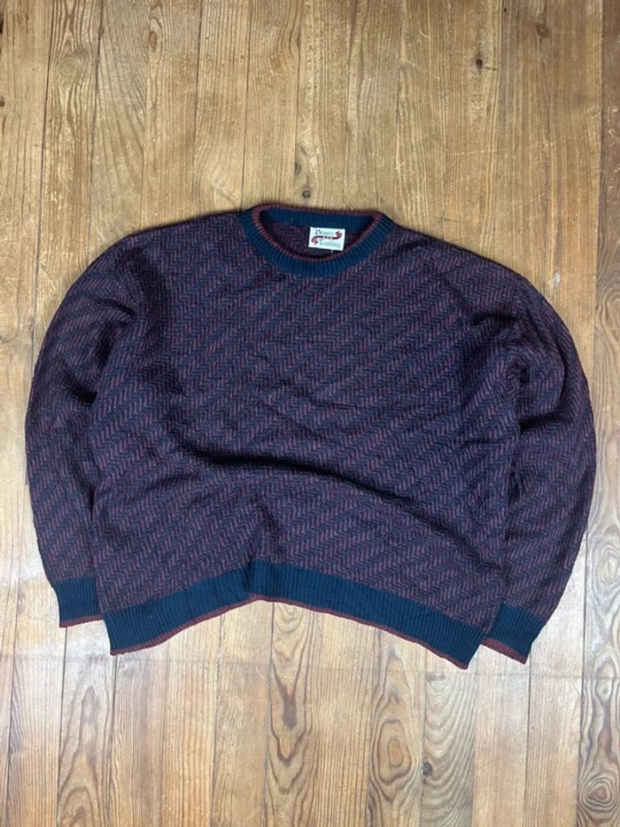 Pull maille vintage motifs rayures bordeaux marine Made in Mexico XL - photo numéro 1