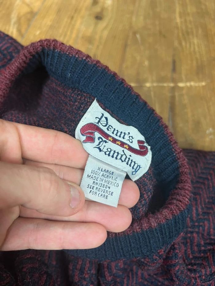 Pull maille vintage motifs rayures bordeaux marine Made in Mexico XL - photo numéro 8