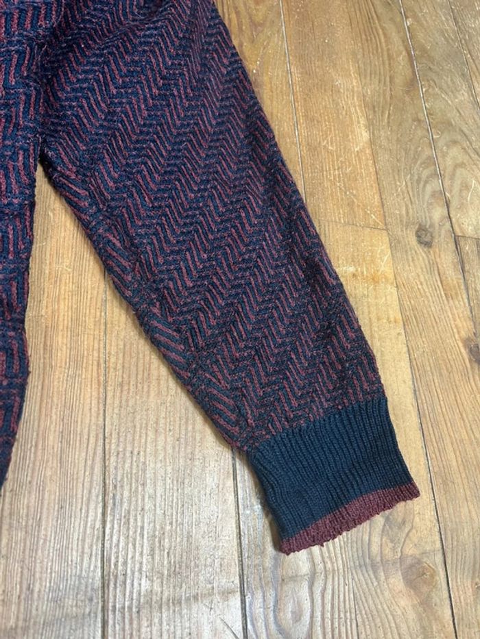 Pull maille vintage motifs rayures bordeaux marine Made in Mexico XL - photo numéro 7