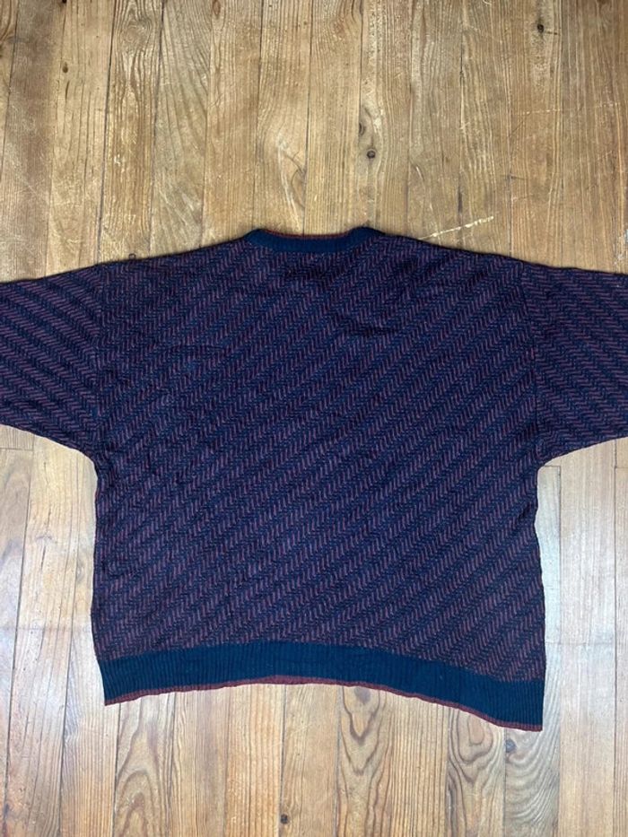 Pull maille vintage motifs rayures bordeaux marine Made in Mexico XL - photo numéro 5