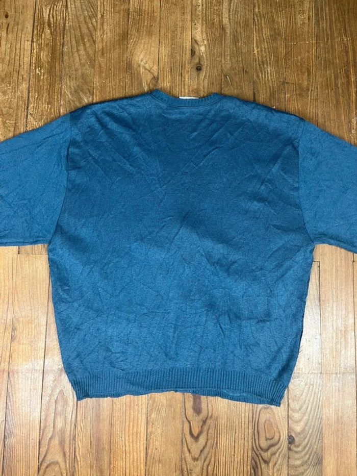 Pull cardigan vintage motifs bleu marine Made in UK L - photo numéro 9