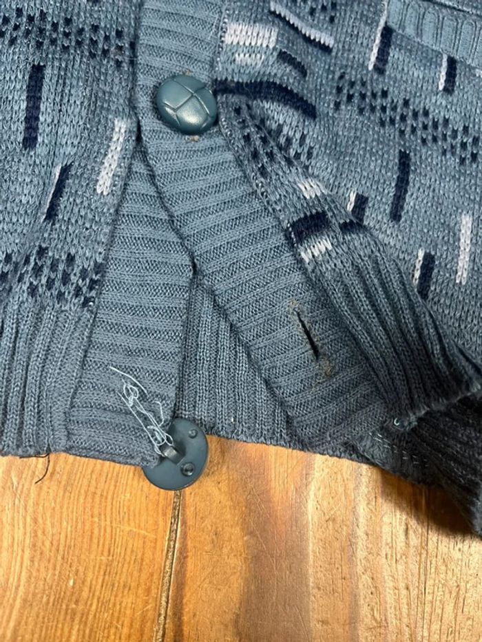 Pull cardigan vintage motifs bleu marine Made in UK L - photo numéro 5