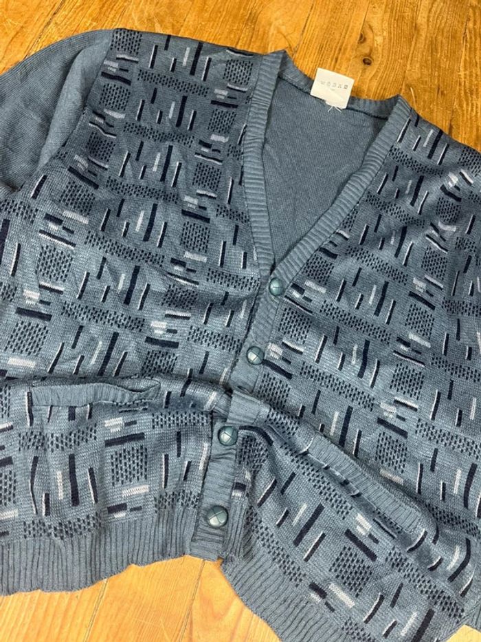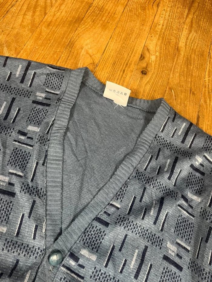 Pull cardigan vintage motifs bleu marine Made in UK L - photo numéro 1