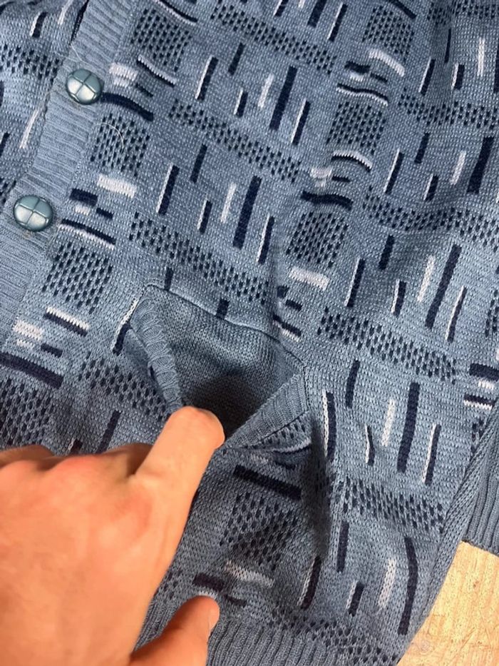 Pull cardigan vintage motifs bleu marine Made in UK L - photo numéro 10