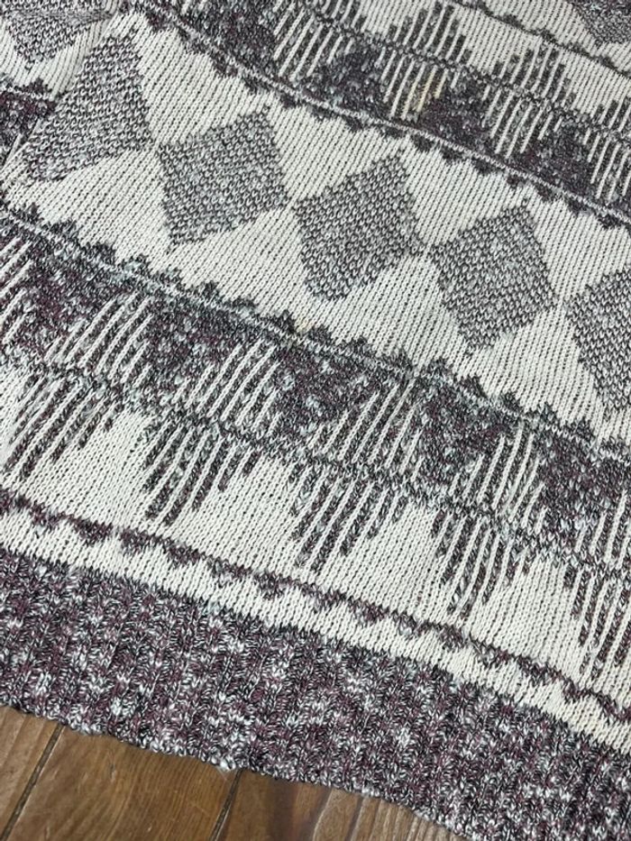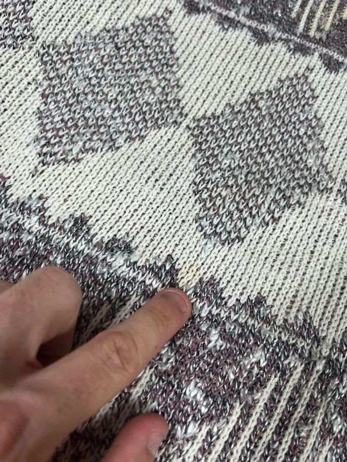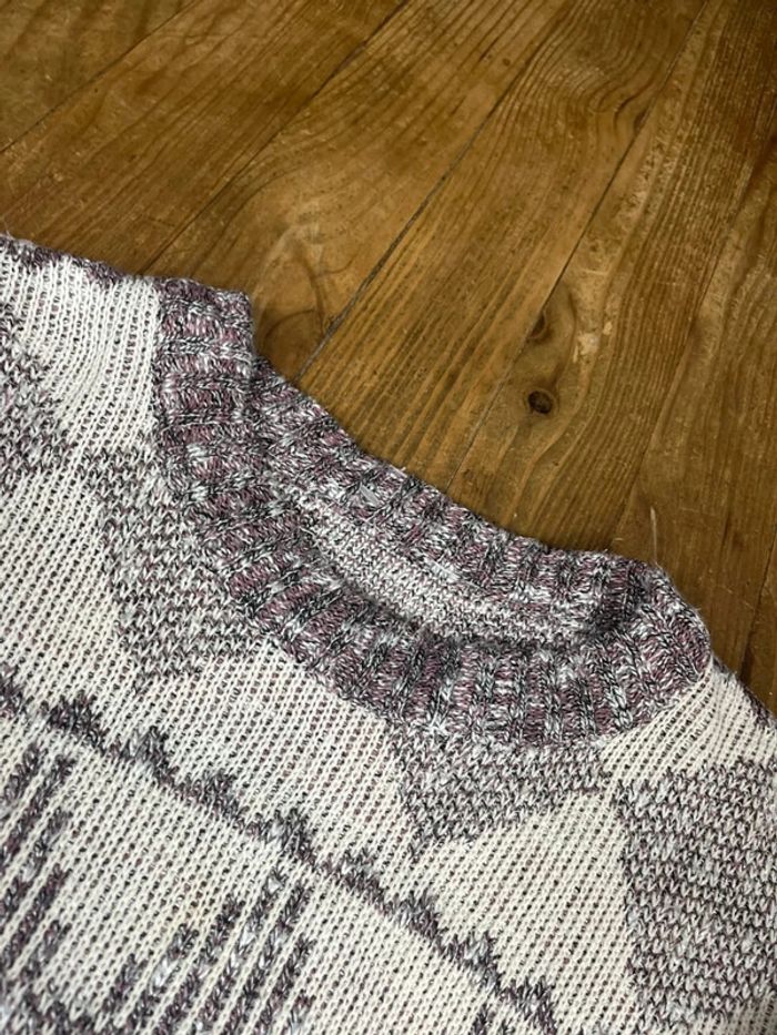 Pull maille vintage coton motifs carreaux blanc gris Made in USA L - photo numéro 9