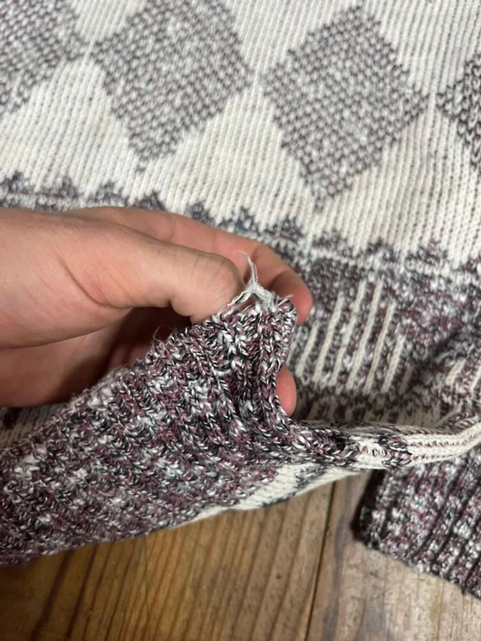 Pull maille vintage coton motifs carreaux blanc gris Made in USA L - photo numéro 13