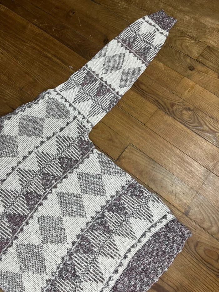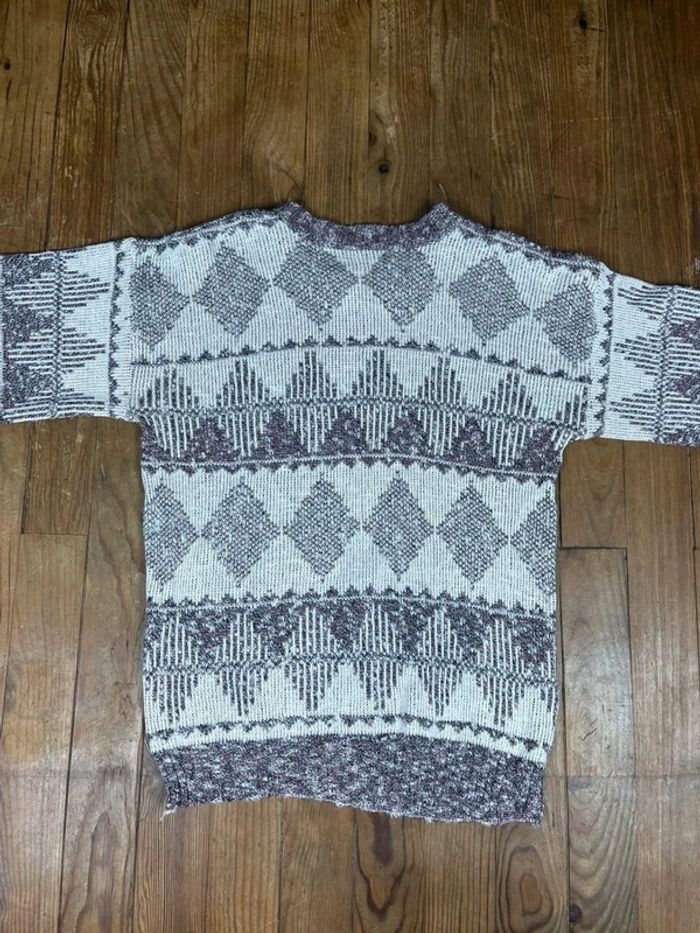 Pull maille vintage coton motifs carreaux blanc gris Made in USA L - photo numéro 11