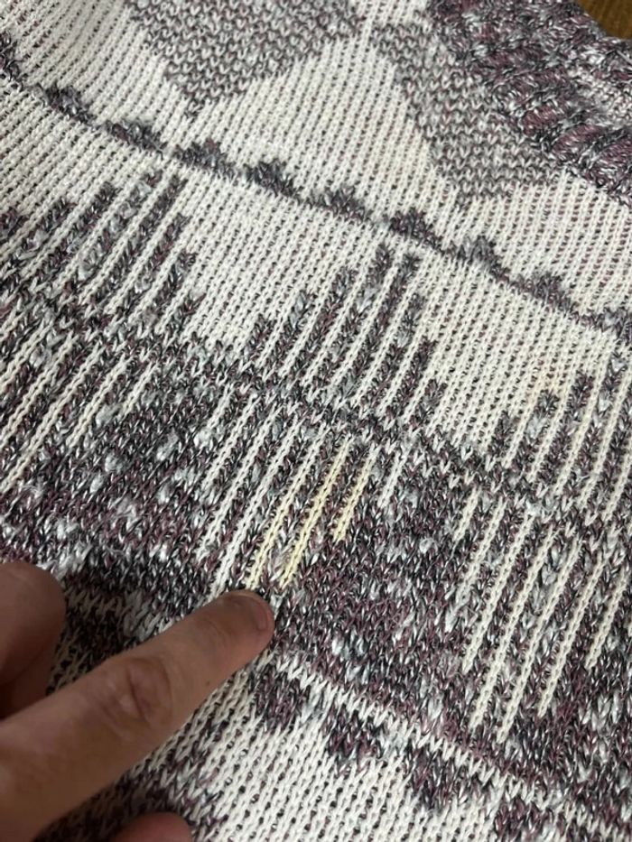 Pull maille vintage coton motifs carreaux blanc gris Made in USA L - photo numéro 8