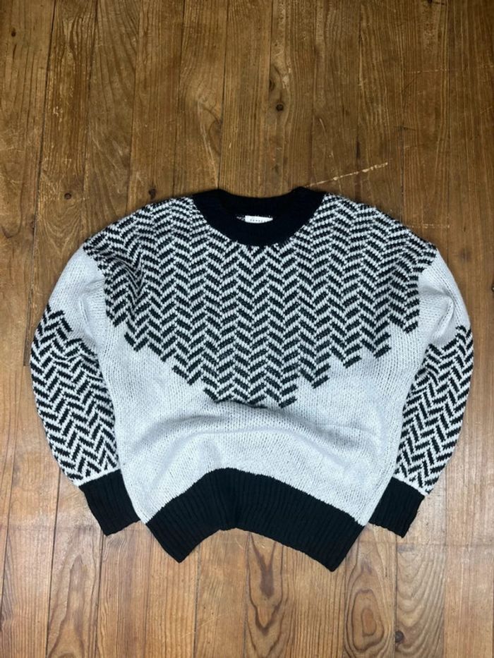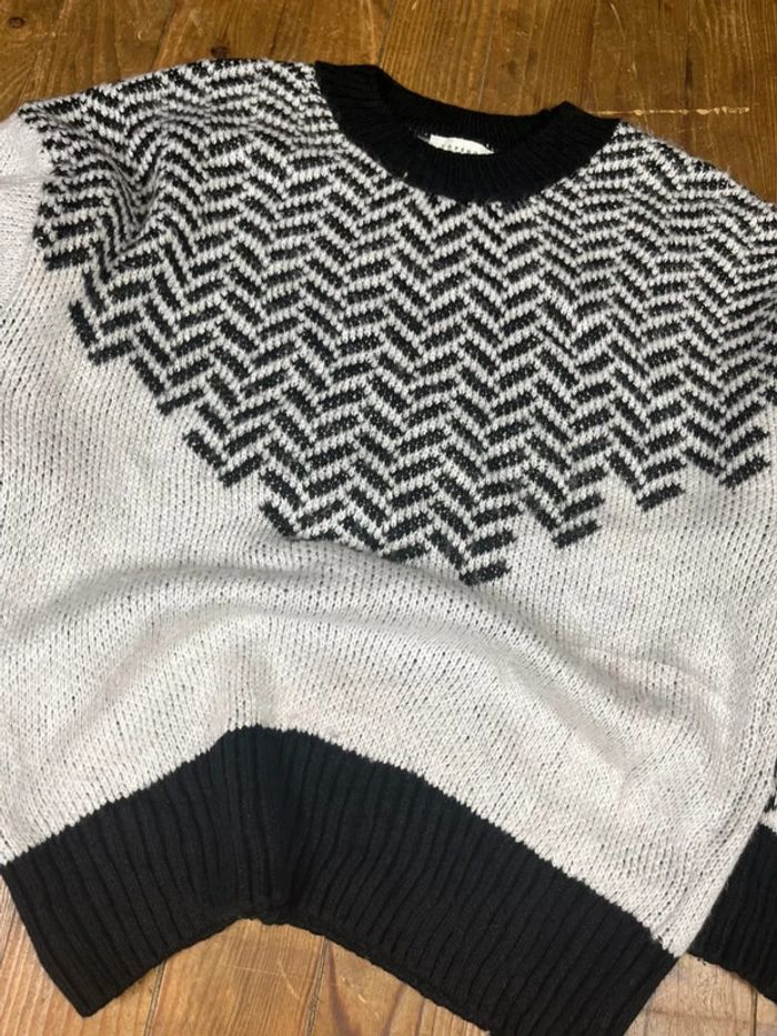 Pull maille vintage motifs rayures blanc noir XS - photo numéro 1
