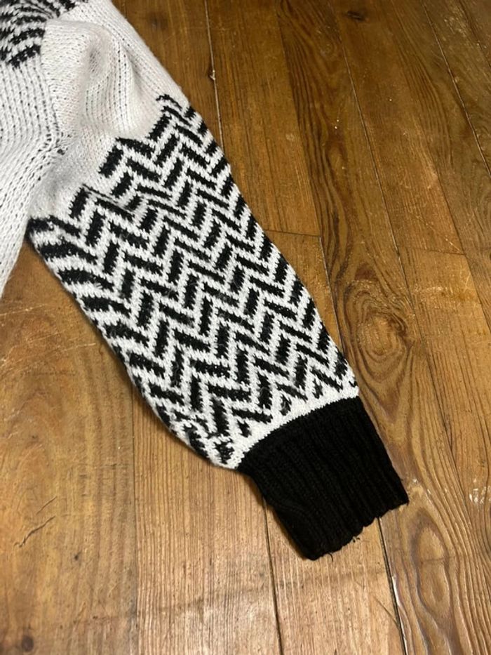 Pull maille vintage motifs rayures blanc noir XS - photo numéro 4