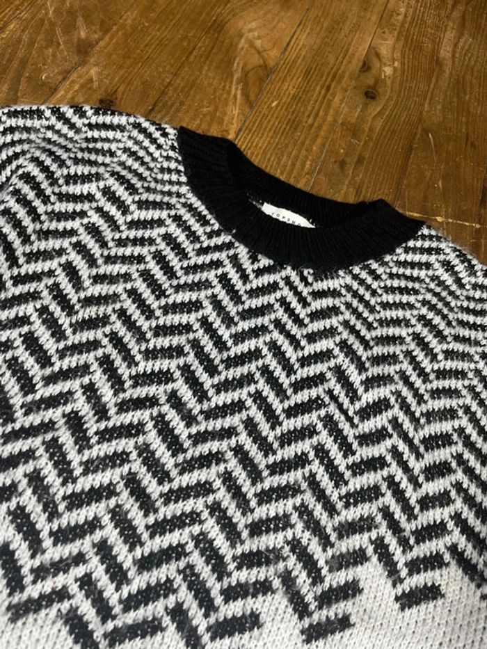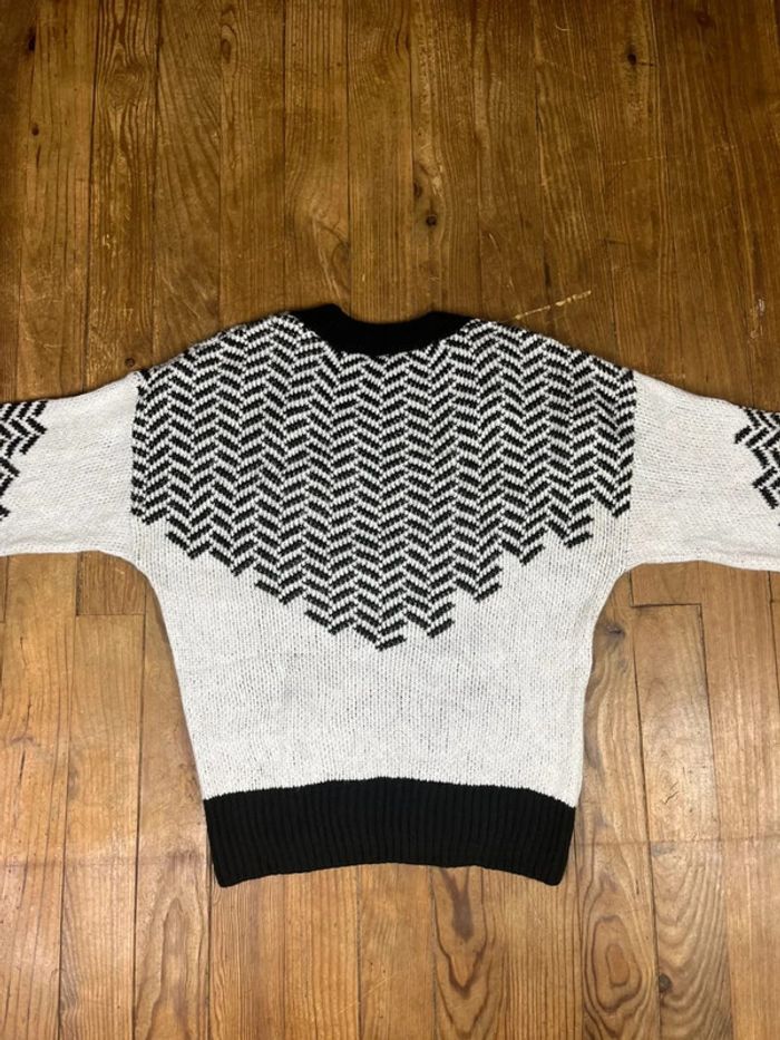 Pull maille vintage motifs rayures blanc noir XS - photo numéro 3