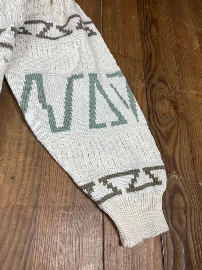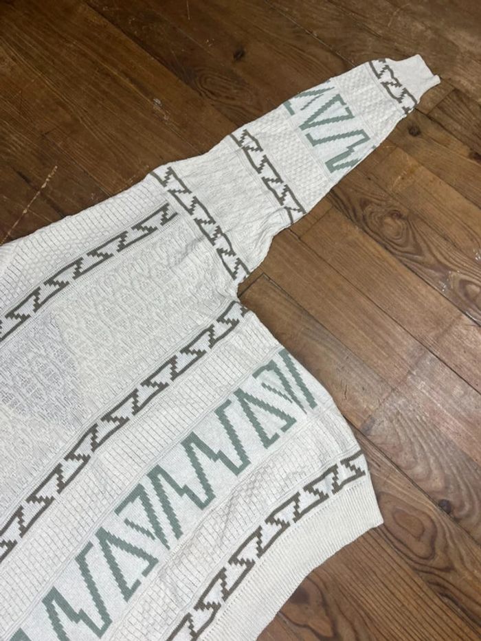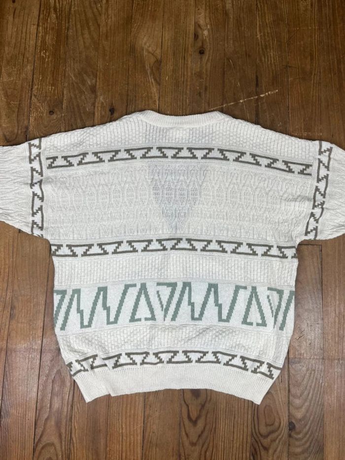 Pull cardigan maille vintage coton motifs rayures blanc M - photo numéro 4