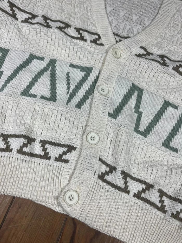 Pull cardigan maille vintage coton motifs rayures blanc M - photo numéro 9