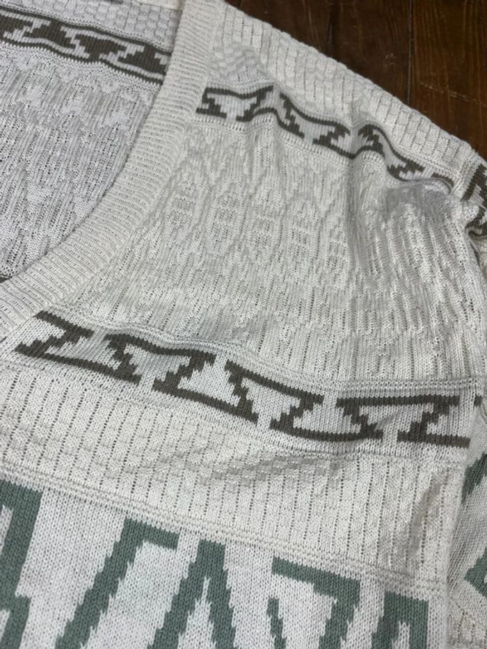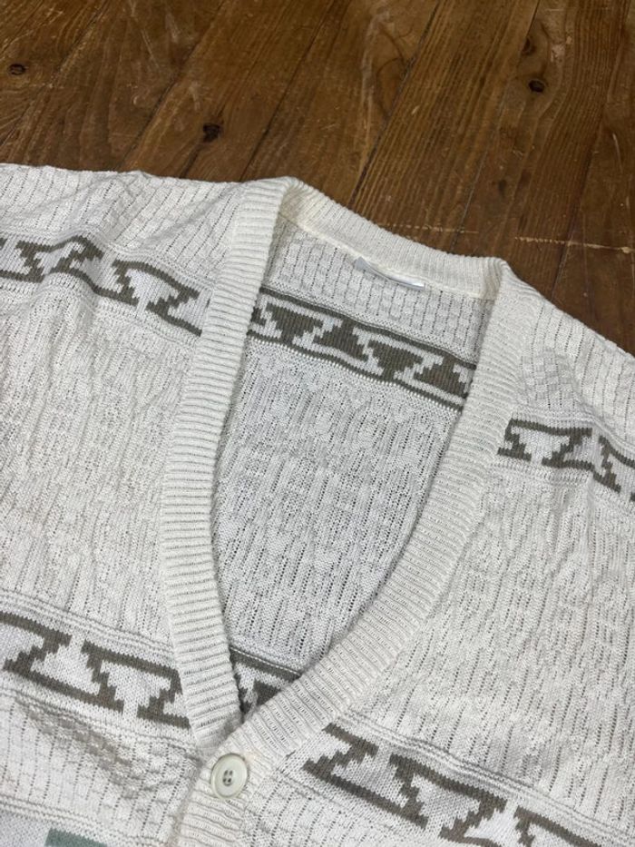 Pull cardigan maille vintage coton motifs rayures blanc M - photo numéro 11
