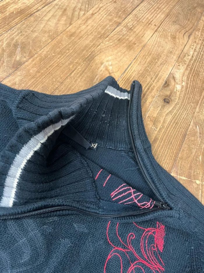 Pull maille zip vintage Y2K Surfwear Quiksilver noir brodé XL coton - photo numéro 9