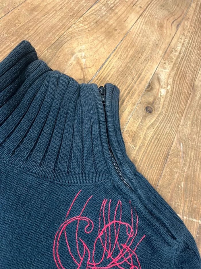 Pull maille zip vintage Y2K Surfwear Quiksilver noir brodé XL coton - photo numéro 14