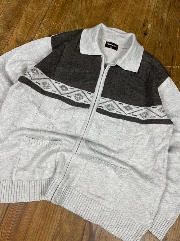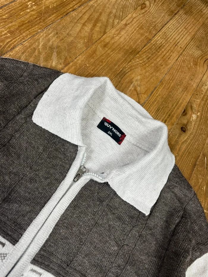 Pull maille vintage zip-up gris clair 2XL XXL - photo numéro 1