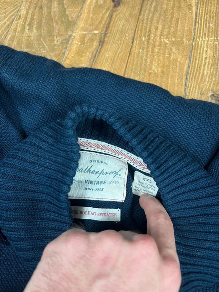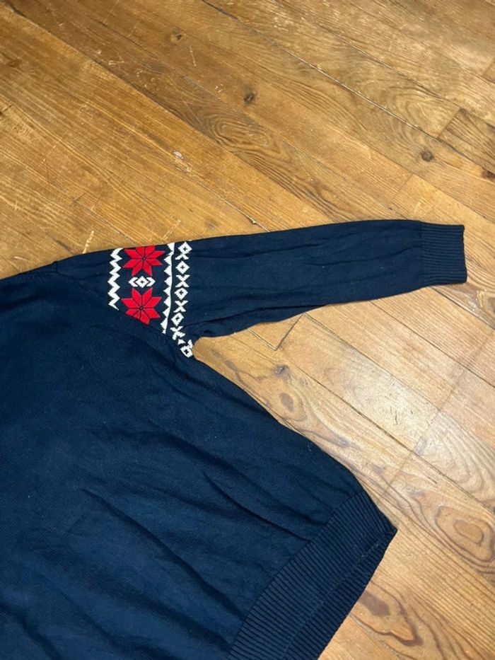Pull maille vintage 100% coton 1/4 zip motifs marine blanc rouge XXL - photo numéro 10