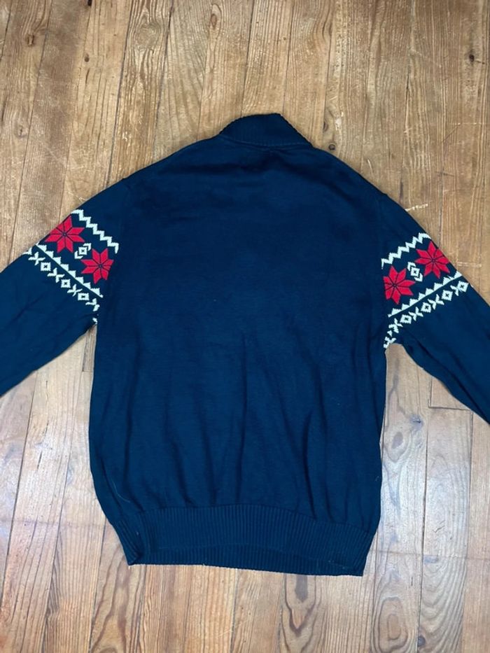 Pull maille vintage 100% coton 1/4 zip motifs marine blanc rouge XXL - photo numéro 11