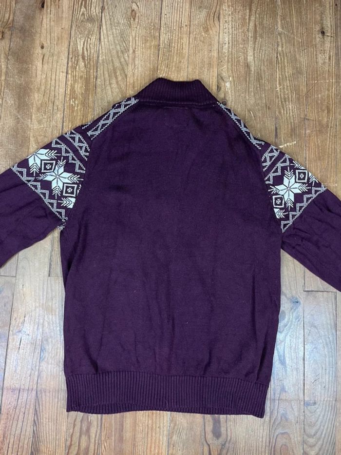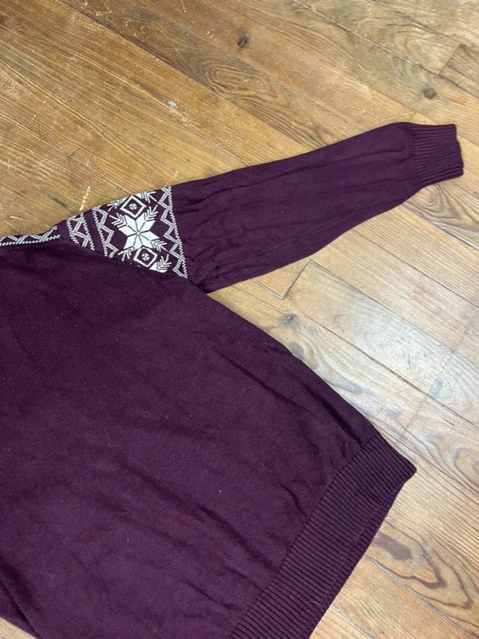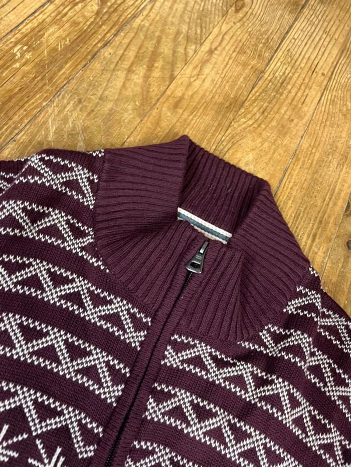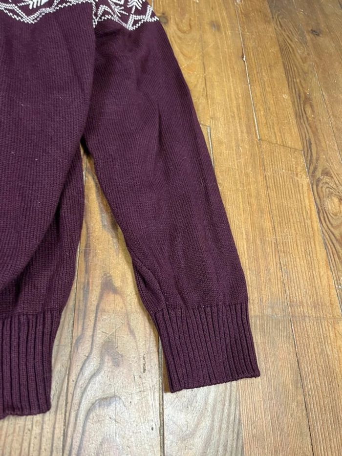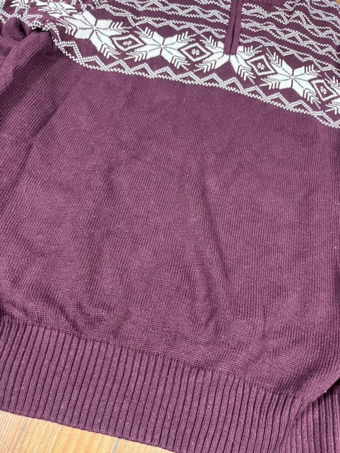Pull maille vintage 100% coton 1/4 zip motifs bordeaux blanc 2XL XXL - photo numéro 11