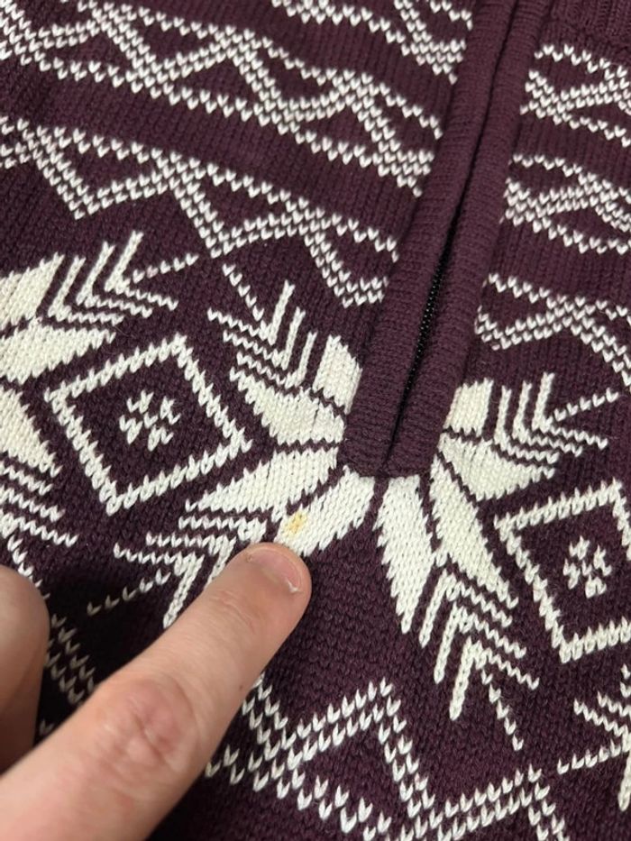 Pull maille vintage 100% coton 1/4 zip motifs bordeaux blanc 2XL XXL - photo numéro 12